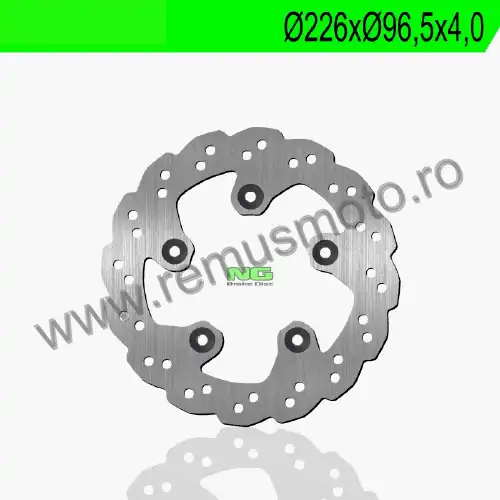 Disc de frana cu montare Stanga, diametrul exterior de 226mm, diametrul interior de 96,5mm, grosime de 4,0mm avand 5 gauri de prindere cu diametrul de 10,5mm.