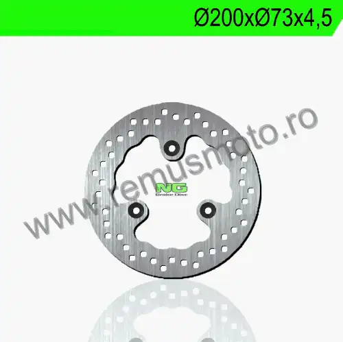 Disc de frana cu montare Stanga, diametrul exterior de 200mm, diametrul interior de 73mm, grosime de 4,5mm avand 3 gauri de prindere cu diametrul de 10,5mm.