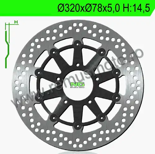 Disc de frana cu montare Stanga/Dreapta, diametrul exterior de 320mm, diametrul interior de 78mm, grosime de 5,0mm avand 5 gauri de prindere cu diametrul de 10,5mm.