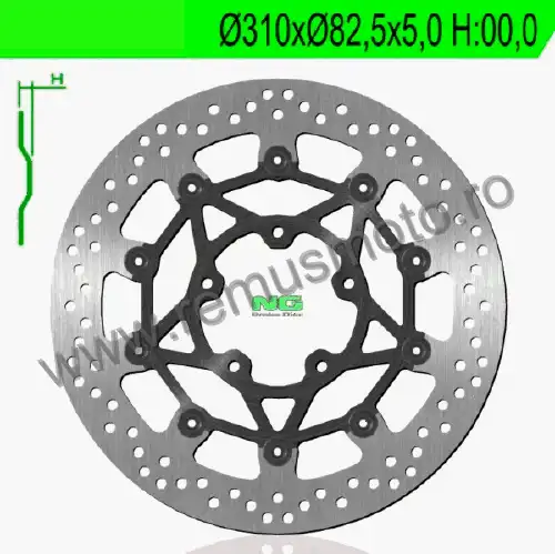 Disc de frana cu montare Stanga, diametrul exterior de 310mm, diametrul interior de 82,5mm, grosime de 5,0mm avand 5 gauri de prindere cu diametrul de 10,5mm.