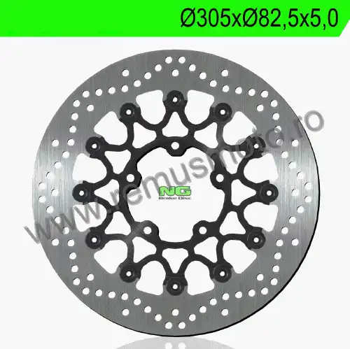 Disc de frana cu montare Stanga/Dreapta, diametrul exterior de 305mm, diametrul interior de 82,5mm, grosime de 5,0mm avand 5 gauri de prindere cu diametrul de 10,5mm.