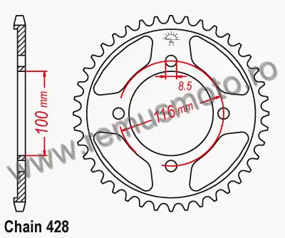 Produse similare cu ' Pinion spate Kawasaki KX100 C3, D1-D9F, DBF-DDF, FEF, FFF, FGF, FHF, FJF >>> 428 Chain Conversion din 2000->2018 ' :