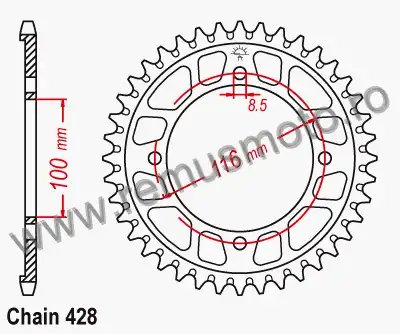 Pinion spate din Aluminiu Kawasaki KX100 C3, D1-D9F, DBF-DDF, FEF, FFF, FGF, FHF, FJF >>> 428 Chain Conversion din 2000->2018