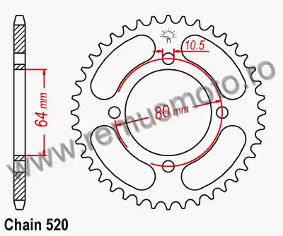 Pinion spate Yamaha YFM125 G-S, T, V, W, X, Y, Z, A, B Grizzly din 2004->2012