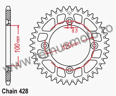 - Pinion spate din Aluminiu Yamaha YZ85 P, R, S, T, V, W, X, Y, Z, A, B, D, E, F, G, H, J (varianta cu roti mari) din 2002->2018